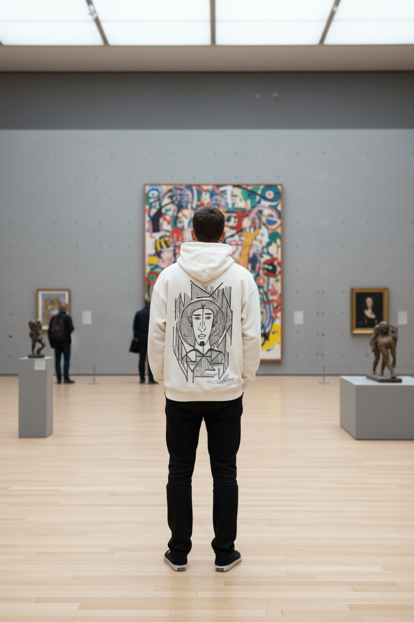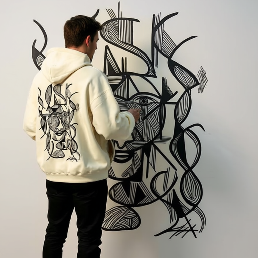 Traces of Essence is not just a brand: it is a visual ritual, an invitation to wear the invisible. Each garment carries the trace of a hand-drawn emotion, preserving the essence of what cannot be spoken. In this space, the everyday transforms into symbol, and the symbolic into presence. This image —captured in an intimate corner of the city— embodies the spirit of the brand: authenticity, contemplation, and living art. Thank you for being part of this experience. Here, every stroke is an echo of who we are.